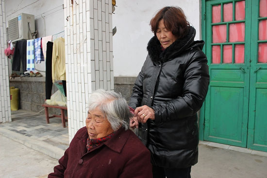 聽說是來采訪兒媳的,78歲的婆婆熱情地招呼我們進屋,三間客廳收拾的干凈利落,即使是雨雪天,也不見一點泥水。老太太坐下后就打開了話匣子:“俺這個媳婦那叫個好,是萬里挑一的好兒媳,進門30多年了,俺娘倆從沒紅過臉,吵過嘴,待俺比親閨女還要親。”“娘,您老可別這么說,我可沒有那么好,再說了對您好那還不是應(yīng)該的啊!”說著就把縫好的衣服放在了沙發(fā)上,伸手為婆婆攏了攏額前的頭發(fā)。“俺有5個女兒,一個兒子,自打兒媳進門后,我們就在一個鍋里抹勺子,這老俗語說啊,牙齒與舌頭還有咬的時候呢?可兒媳對俺就是沒有一句大言語,還盡心地伺候俺,俺都78歲了,眼不聾耳不花,這可全是俺兒媳的功勞。以前家里的日子困難,再加上俺家人口多,兒子在嶧城供電局上班,家里家外全靠俺兒媳一人。那時候天還不亮就得推一大盆糊子烙煎餅,烙完煎餅,做好飯還要下地干活,一句怨言都要沒有。后來,俺又添了二個孫子,一個孫女,俺兒媳天天都忙的團團轉(zhuǎn),還不時給俺做些好吃的。1987年的冬天,俺媳婦去臺兒莊那里扒河,回來后都是晚上8點多了,俺發(fā)燒不想吃飯,心里就想吃手搟面條,無心給媳婦說了句,媳婦就給俺做了,還加了2個荷包蛋,那是俺吃的最香的一頓飯。第二天俺才知道,媳婦的手在抬筐時給劃破了一個口子。”