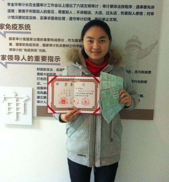 除此之外,朱偉在自己的工作崗位上也是兢兢業業。2011年,該同志通過山東省公務員考試進入聊城市審計局。她努力學習審計專業知識,虛心向同事請教,在業務上進步很快,已經參加了土地出讓金使用專項審計、全國社保資金審計、全國地方性政府債務審計等大大小小十余個審計項目,并多次擔任項目主審。由于工作認真、努力,獲得了領導和同事的好評,在進局第二年就被評為局機關先進工作者。