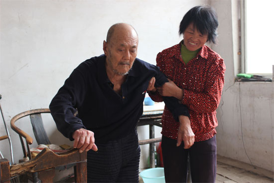 2007年,公公張如華突發(fā)腦血栓,雖搶救及時沒有生命危險,但卻落得半身不遂,癱瘓?jiān)诖玻顭o法自理,需要人長期照顧。年邁的婆婆因過度勞累早在兩年前已去世,二弟媳婦身體不好,照理公公重?fù)?dān),陳留香義不容辭的接下來了。老人病倒后,脾氣暴躁起來,經(jīng)常說一些令人傷心的話,挨罵是家常便飯,而陳留香卻沒有因此嫌棄,忙完農(nóng)活回來陪老人聊聊天解解悶,一有時間就攙扶老人鍛煉恢復(fù),老人想吃啥,她總是盡量滿足,從來不嫌麻煩,把老人照顧得舒舒服服、干干凈凈、開開心心,到現(xiàn)在老人已經(jīng)能自己坐起來了,吃飯、上廁所基本能自理了,原來滿是皺紋和苦惱的臉上掛滿了笑容。