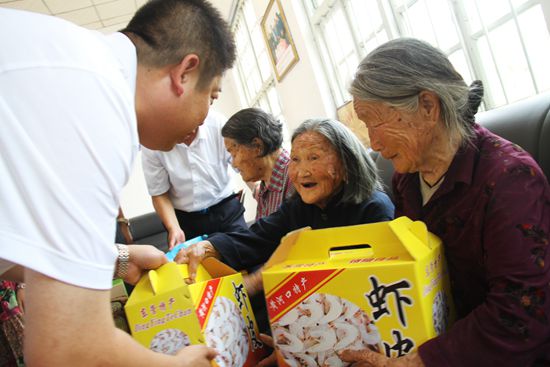 王大江在事業(yè)上稍微有了點起色后,就本著富了不忘本的原則,每年都給東王村的孤寡老人和貧困家庭送去米、面、油、肉等生活用品。墾利街道和勝坨鎮(zhèn)的兩家敬老院中80歲以上的老人、東王村70歲以上的老人,每當他們過生日的時候,王大江都要給他們送去生日蛋糕,表達自己的美好祝福,每年的九九老人節(jié),王大江都會去老年公寓陪老人過節(jié),一直堅持著。不僅在生活上給予幫助,他還自己出錢給村里老人修建文化娛樂場所。