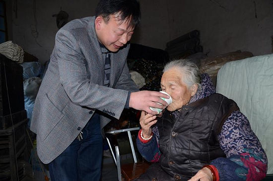 “那時(shí)候剛結(jié)婚還沒有孩子。現(xiàn)在我的兒子都已經(jīng)14歲了。”王東說,這15年來照顧老人確實(shí)辛苦。他還記得2007年秋天,老人患上了肺氣腫,前前后后在醫(yī)院照顧了老人一個(gè)多月,醫(yī)院的醫(yī)生護(hù)士還都以為王東是老人的小兒子。經(jīng)過王東的細(xì)心照料,老人的身體慢慢地痊愈了,這一個(gè)月王東自己卻消瘦了10多斤。