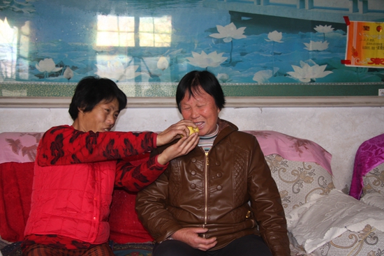 陳愛云和劉沒學做鄰居已經十年,在陳愛云眼里,劉沒學是個讓人心疼的“苦命人”。因為小時候大腦受到損傷,劉沒學走路只能靠半邊身子帶動往前一步步挪,語言系統也有障礙,情緒一激動,話就說不清。天降橫禍,兩年前丈夫意外去世,劉沒學只能和9歲的兒子相依為命。怕劉沒學看不開,陳愛云三天兩頭往她家里跑,一邊流著眼淚一邊勸導她,讓她為了孩子說啥也得好好活下去。劉沒學不吃不喝,陳愛云就想辦法把她誆到自己家來,說是讓她過來幫忙做些力所能及的農活,等她來了,陳愛云就把熱騰騰的飯端到她面前。就這樣,一天天的陪伴,一句句的安慰,一點點的幫助,劉沒學逐漸從陰影中走了出來,有了活下去的信心。