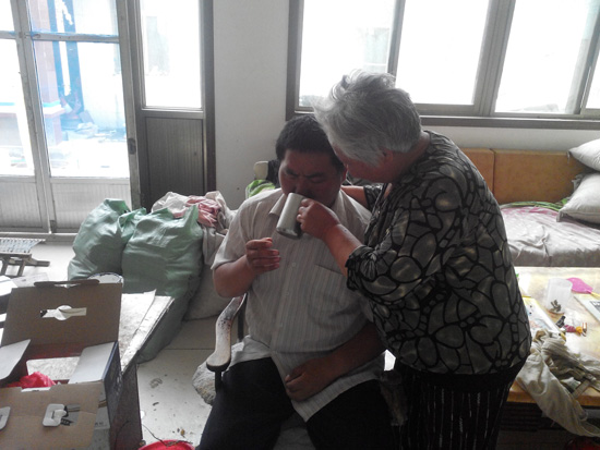 為了更好地照顧兒子,王樹梅每天早晚給他泡腳、每?jī)尚r(shí)給他翻一次身、給他按時(shí)揉腿、捶背、擦拭身體,王樹梅成了兒子的營(yíng)養(yǎng)師、按摩師、理發(fā)師以及保健醫(yī)師。劉明光從出車禍到現(xiàn)在,臥病在床常見的褥瘡,他從未長(zhǎng)過一個(gè)。