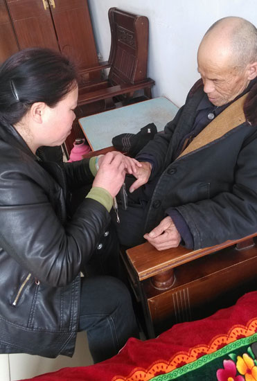 陳孝芳深深感到,敬老院里住的盡是孤寡老人,沒兒沒女,他們需要親情撫慰。她說:“院民們雖不是我的親人,但我卻視他們?yōu)槲业挠H人。給他們傾注真情,關(guān)愛他們是我的責任。”她是這么說的,也是這么做的。擔任院長以來,她一直把院民當做自己的老人,關(guān)懷備至。去年冬天,院民張廣生老人突發(fā)高燒,陳孝芳得知后趕緊叫人一起把他送到醫(yī)院救治,一直等他病情穩(wěn)定了才放心,等回家時已是半夜。今年正月,王永河老人和李尊永老人鬧玩,王永河老人磕破了頭。陳孝芳聽到消息后趕緊從屋里跑出來,外套也沒來得及穿,騎上三輪車就帶著他去了醫(yī)院,一直守著給他包扎治療,打完點滴后送他回到敬老院。直到老人們都睡下了,她才拖著疲憊的身軀回到家中,到家時已經(jīng)接近深夜12點了。