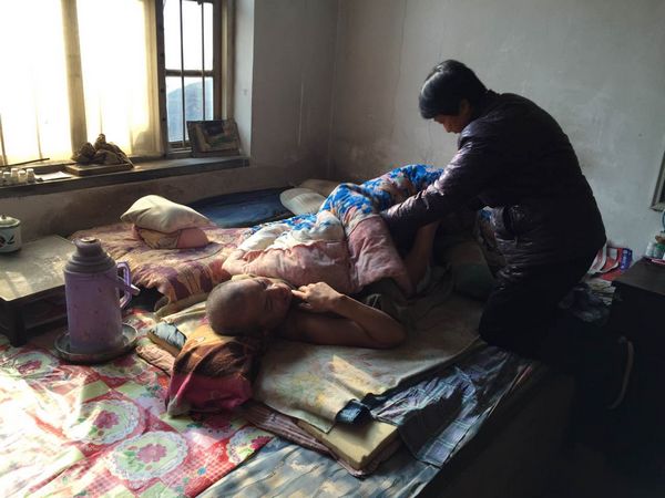 對李書珍來說,生活的磨難已經(jīng)讓孩子受了委屈,她不能再讓可憐的丈夫跟著自己受苦。她每天盡心盡力的照顧丈夫,盡量讓他躺著、睡著舒服點(diǎn)。農(nóng)閑時(shí),地里和家里的活兒,李書珍湊合著還能應(yīng)付過來,一到農(nóng)忙時(shí)節(jié),地里的活兒多了,白天忙不完,李書珍就不得不晚上擠出時(shí)間干農(nóng)活,再加上每3個(gè)小時(shí)給丈夫翻一次身,每次都是活兒干的差不多了,天也快亮了。