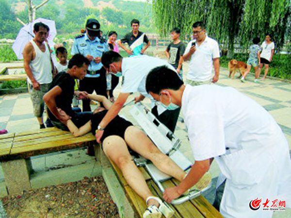 路過此地的王忠林看到兩人落水后,便急奔到岸邊,在環(huán)顧四周尋找救援工具無果的情況下,連衣服也沒來得及脫,便縱身躍入了水中。他先是將還在水面掙扎的男子拖到了岸邊,隨即又回到水里找尋女孩的下落,因為書庫雜草叢生,水質(zhì)混濁,王忠林只能憑感覺在水里摸索,經(jīng)過仔細摸索并確定位置后,他將女孩也一步步拉到了岸邊。此時,落水男子已經(jīng)清醒,但女孩還處于昏迷之中,他又立即對女孩展開了急救。這時,榆山街道第二派出所的民警也趕到了現(xiàn)場,并立即撥打了120急救車,在現(xiàn)場群眾的幫助下,將落水情侶送往了醫(yī)院進行緊急治療。而王忠林此時身上的衣服全部濕透,裝在口袋里的手機也因為進水喪失了使用功能,錢包里的錢也被水浸泡的掉了顏色。在現(xiàn)場的群眾紛紛圍攏過來詢問王忠林有沒有事,并向他見義勇為的行為豎起了大拇指,而王忠林卻笑著騎上自己的電動車消失在了人們的視線中。