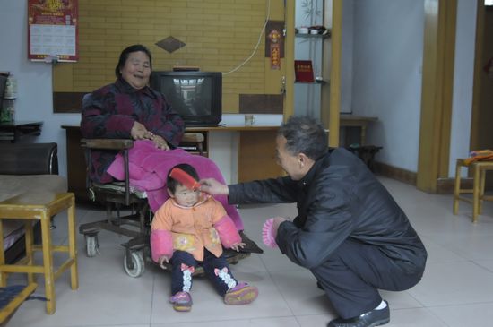 三十多年來,趙景英是在丈夫做的輪椅上度過來的。丈夫每天都把妻子從床上抱起來放到輪椅上坐著,然后把妻子推到院子里,讓她看看熟悉的小院、自家喂的雞、院子上面的天空,感受一下陽光。妻子的心情漸漸好起來,特別是給丈夫生了孩子之后,她心里更充實(shí)了。為了減輕家里負(fù)擔(dān),她坐在輪椅上給丈夫和兩個(gè)孩子織毛衣,關(guān)節(jié)變形不打彎,她就用胳膊和手掌夾著織針織,來串門的鄰居看到后嘖嘖稱贊。