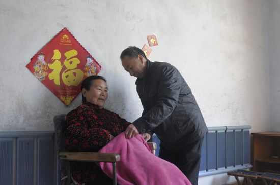 結(jié)婚不到一年,妻子得了偏癱。秦承明覺得這是上天對他們夫妻愛情的考驗(yàn),不論妻子能不能在站起來,他下決心一輩子不離不棄!秦承明經(jīng)常開導(dǎo)妻子,喚起妻子生活的信心,一邊護(hù)理著愛妻,為妻子喂飯、喝水、梳頭洗臉、按摩、翻身。這一照顧就照顧了三十多年,三十年如一日,他對妻子不離不棄,他用自己的行動(dòng),證明了自己對妻子的愛。在照顧妻子的間隙,他委托母親或丈母娘幫忙看顧妻子,自己外出干活掙點(diǎn)錢養(yǎng)家。他學(xué)會(huì)了開拖拉機(jī),有時(shí)候半夜出車給他人干活,腰酸背痛,從不喊一聲苦。