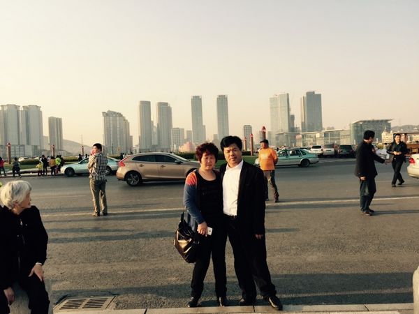 王春華與妻子在海邊
