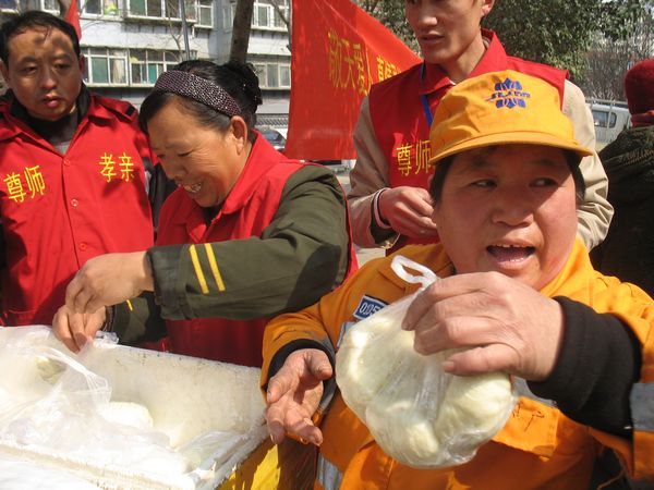 這些年,在長(zhǎng)盛北區(qū)環(huán)城公園早起晨練的人們,總能看到有個(gè)穿著印著"學(xué)雷鋒小組"的紅色背心的阿姨在認(rèn)真地打掃衛(wèi)生,特別是冬天下雪后,在社區(qū)醫(yī)院門口、學(xué)校門口、社區(qū)廣場(chǎng)及馬路公交站牌也經(jīng)常發(fā)現(xiàn)她的身影。有些過路的市民停下來和她聊聊,在得知她不是環(huán)衛(wèi)工是雷鋒小組的成員的時(shí)候,他們紛紛豎起大拇指。許多市民在她的帶動(dòng)下,也主動(dòng)自覺地幫助撿起地上的垃圾、雜物,加入到維護(hù)市容市貌的行動(dòng)中。