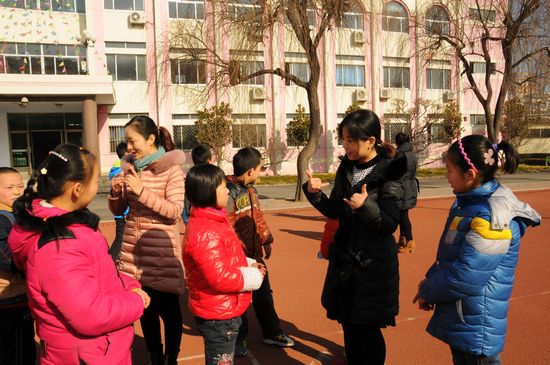 她用優質課堂為殘缺的花朵播撒成長的陽光。閆蕊剛上班就擔任一年級新生的班主任,當時,還略帶稚氣的她一下子接過十二名聽障孩子,同時也接過了孩子家長沉甸甸的囑托。她永遠無法忘記自己的第一堂課:孩子們全部坐得整整齊齊,忽閃著大眼睛看著她,仿佛他們面前這個叫做"老師"的人一定可以幫他們找回生命中缺失的美好。在這種無比信任、無比依賴的眼神中,閆蕊感受到一種沉甸甸的責任,決心帶領學生走出那個懵懂的世界!然而真正教學起來才發現,在學校里學的那些專業知識根本不夠用。班上的學生雖然不多,但情況各不相同,致聾原因不同,聽力損失不同,發音器官狀況不同,在教學中基本上一個學生一個教學方案。課堂上,她刪繁就簡,用最實用的方法引領學生掌握知識。她教孩子們做舌操,訓練他們僵硬退化的發音器官;她夸大口型,訓練孩子的說話能力;她提高講課的嗓門,讓有殘余聽力的孩子學著聽音;她用表情、動作演示,讓學生更直觀地理解語言。這些特殊的、夸張的教學方式,讓痛苦的咽喉炎成了如影隨形的頑疾,同時也將她向往中的那份屬于教師的從容和優雅變成了一種奢望。即便如此,她有時仍會被一些情緒失控的孩子弄得措手不及、狼狽不堪。但功夫不負有心人,經過一路探索,她逐漸形成了自己的教學風格,優質課、公開課、創新課把她打磨成了泰安市教學能手。