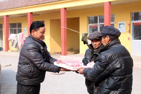 張振美把肉送到老人手中