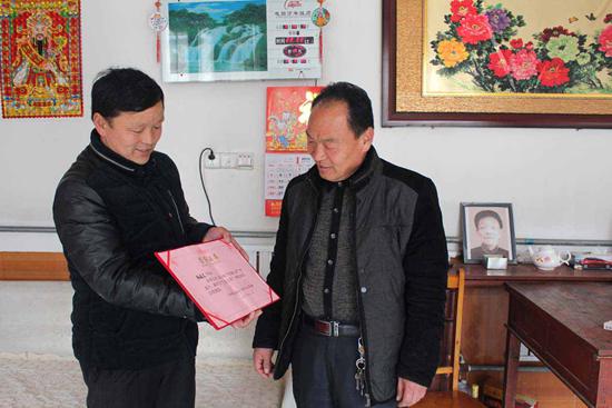 張振美向朋友展示“仁德之星”證書