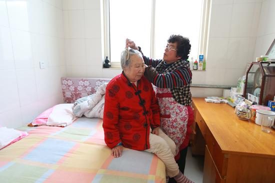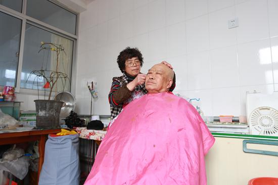 為了更好照顧三位老人,李志欣和丈夫商量把他們?nèi)拷拥阶约杭依铩K龞|屋騰出來讓養(yǎng)父母住,公公住西屋。她和丈夫住中間,每天都要給三位老人擦洗一遍身子,三到五天刮一次胡子,每半月理一次發(fā)。洗衣服、洗床單被單、接屎接尿,天天如此。自己從不舍得吃肉,卻經(jīng)常給老人買肉買魚。養(yǎng)母不能吞咽食物,她就把吃的打碎一勺一勺地喂,然后再伺候公公和養(yǎng)父吃飯,等一家人全部吃飽,洗完碗筷,李志欣累的吃不進飯了。