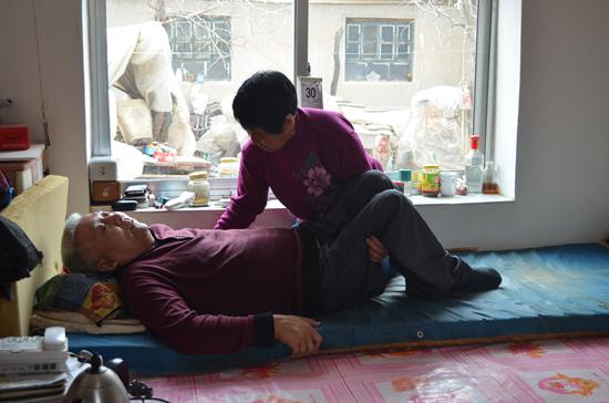 從丈夫刁世勤癱瘓,到現在已經過去了40年,在這40年里,王業秀無微不至地照顧著丈夫,由于丈夫無法活動,她每天晚上都要起床好幾次給丈夫翻身,一旦發現丈夫不舒服,就馬上起床過來查看。這些年她還學會了打針、輸液、推拿和按摩甚至理發。王業秀已經熟練掌握了基本的護理知識,定期給丈夫按摩、推拿,陪他聊天解悶。