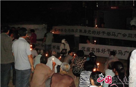 馬廣會,男,1953年出生,生前系梁山縣小路口鎮殷那里村會計。他任農村基層干部三十年,他沒有驚天動地的感人事跡,卻始終懷著一顆為民服務的赤誠之心,贏得全村村民交口稱贊。他走了,全村176戶村民聚集在他家門口,手捧蠟燭,為他祈福,為他們心中的好人送行。