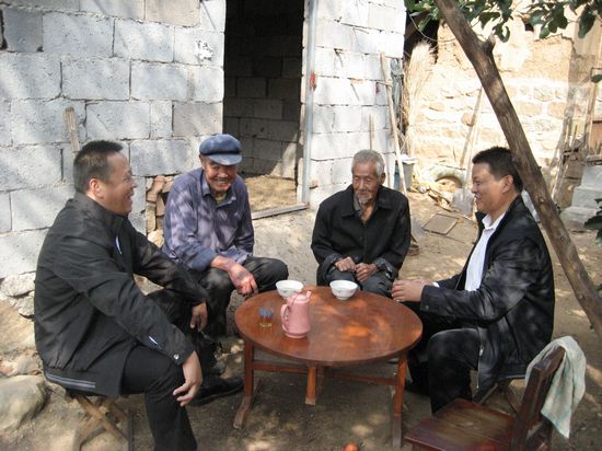 侯傳光、侯傳密同兩位孤寡老人聊天