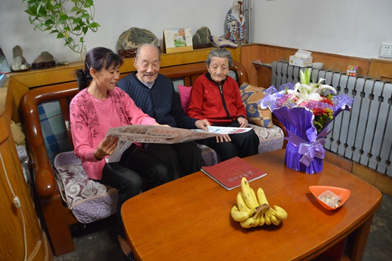 王建華的女兒和爺爺奶奶的感情特別好,在北京工作后不能經常回家,但只要回到家就接過照顧爺爺奶奶的所有活,在外工作雖然很忙但是只要一有空就會往家打電話,惦記爺爺奶奶的身體健康。今年重陽節,社區居委會的工作人員專門看望王建華一家,并為兩位老人送上鮮花和蛋糕,號召社區所有居民像王建華學習,如今孝老愛親已在社區形成濃厚氛圍。