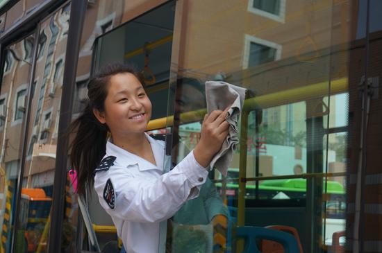 擦拭玻璃為乘客提供潔凈的車廂環(huán)境