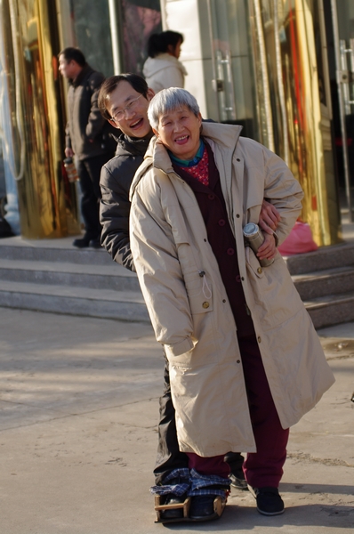 肩挑重?fù)?dān),坦然面對生活。生活,總還要繼續(xù)……自打母親患病后,人們經(jīng)常能在蓬萊公園和小區(qū)廣場碰到一個年輕人將自己的腳和一位老人的腳綁在一起,攙扶著老人散步。這個年輕人就是王延剛。