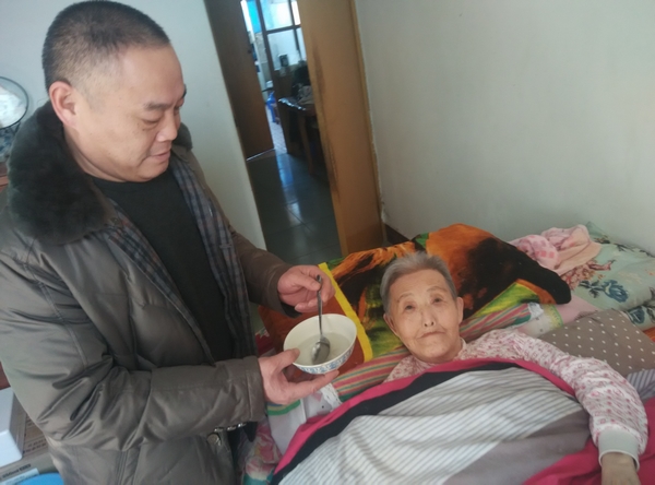 張新軍的愛人經(jīng)營(yíng)一家小門市,自從老人病后,她就將生活的重心放在照顧老人身上。談起照顧老人,她說,“娘的養(yǎng)育恩情比天大,有機(jī)會(huì)盡孝是福氣!”