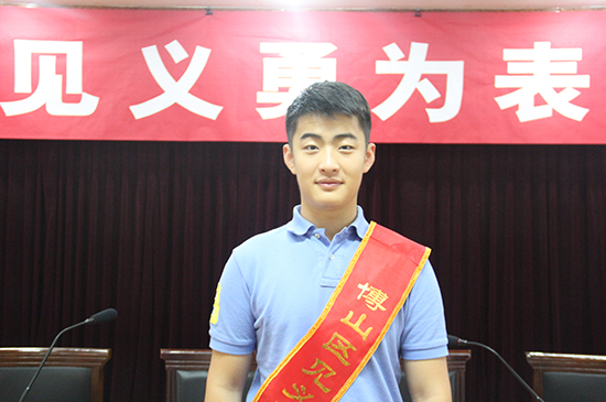 桑正浩,18歲,淄博市第一中學(xué)在讀學(xué)生2015年夏天,桑正浩同學(xué)奮不顧身跳入三米多深的塘水中,成功救起一名溺水女童,他不顧個人安危,見義勇為,展示了一名新時期高中生文明風尚和精神面貌,也深深感動了周圍的群眾,在學(xué)校和當?shù)厣鐣䝼鳛榧言挕?/span>曾入選“淄博好人榜”、被評為博山區(qū)見義勇為先進分子。