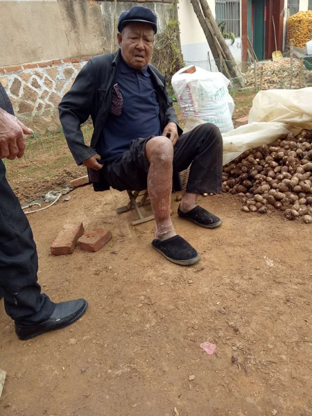 “那天我回老家田里看了看,然后想去一個(gè)老伙計(jì)家串門,老伙計(jì)就住在殷式松家南面,但他不在家,我就順著屋東的路往北走。突然就聞到一股焦味,一抬走,發(fā)現(xiàn)殷式松家里往外冒濃煙。”葛寶雙說,他趕緊跑過去查看,發(fā)現(xiàn)殷式松家的堂屋里火舌亂竄,濃煙滾滾,透過濃煙,他隱約看到殷式松正躺在堂屋里的地上,似乎是受傷了。先救人要緊,葛寶雙立刻沖到屋里,三步并作兩步來到殷式松跟前,把他攙扶起來。剛開始,葛寶雙尋思扶著殷式松出來,哪知他腿部受傷嚴(yán)重,根本不能走路了。情急之下,他一用力把殷式松馱到背上,從火場(chǎng)里沖了出來。