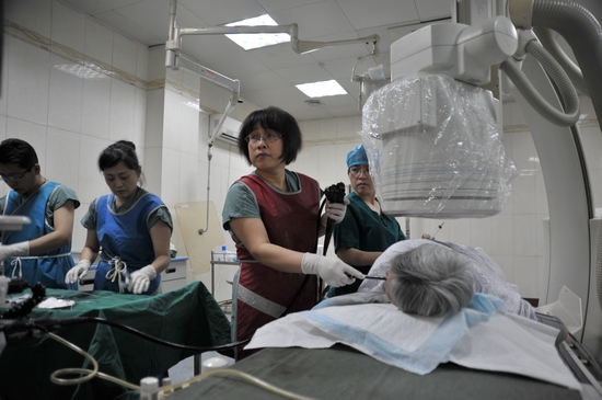 “劉主任視力不佳,但是她能精準地識別出早癌等微小病變,她說不靠眼力靠心力,那是一種內鏡醫師特有的敏感力。”濱醫附院內鏡中心護士長高桃這樣評價劉成霞。按說,劉成霞已過“知天命”的年紀,肩上的榮譽、職務早已“達標”,完全可以停下來歇歇了,但她卻從未停止業務鉆研的步伐,甚至是焚膏繼晷地在拼搏——2010年到美國霍普金斯大學醫院做訪問學者,2012年前往新加坡國際關系學院進修,2014年前往日本國立癌癥研究院研修。在日本進修的3個月,吃慣饅頭炒菜的劉成霞享受不了頓頓料理、大醬湯,常常處于半饑半飽的狀態中,但她的表現,足以讓我們驕傲。在一次案例學習中,13個國家醫師同時診斷,只有她一人精確診斷出患者存在的所有結腸病變!而且,她是所有人中年齡最長的。