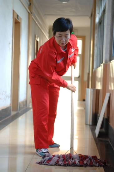 最早一個來,最后一個走,每天都把自己負責的衛生區打掃得一塵不染