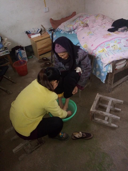 俗話說,久病床前無孝子。然而婆婆卻是久病床前有孝媳。當初,楊紅梅既要服侍婆婆,又要照顧著奶奶和一歲多的女兒,還要參加工廠勞動,她不得不天未亮就起床,做好飯菜給婆婆送去,然后出早工,晚上要收拾家務、干農活,每天忙到深夜才入睡,她起早貪黑,披星戴月,任勞任怨,毫無怨言。婆婆病情最嚴重的時候,她和大姐輪流在醫院陪夜,她精心伺候著婆婆,盼著老人早日康復,同室病友都說她是老人的親閨女。幾天過去了,可婆婆的病情不見好轉,已被中心醫院列為嚴重病情,已被下病危通知書,需要轉院治療,禍不單行,不知怎么回事奶奶身體也垮下來了,加上孩子年幼,這一切的事情壓得她喘不過氣,在家里,奶奶身體也越來越差,時常出現頭暈眼花,大小便失禁的情況,楊紅梅依然無怨無悔,不辭辛勞照顧。奶奶大小便不方便,便放了一個便桶在墻角,每天一次清洗;奶奶洗澡要備好衣物、洗澡水;吃喝拉撒無一不安排得妥妥當當。每天給老人送飯按摩身體、擦臉、洗衣、洗腳、端便盆,從不嫌臟嫌累。為了讓婆婆安心養病,每次去醫院,她頂著家里所有的生活壓力,給婆婆報平安:娘,家里一切都好,您放心吧。