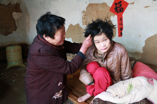 一天夜里,小花猛得一蹬,就把睡熟中的陳寶玉踢到了床下,導(dǎo)致一根肋骨斷裂。得了病的小花就像一頭脫了僵的野馬,在狂躁的道路上越走越遠(yuǎn)。一不留神,就出去惹事,打人砸東西。吃飯不能自己吃,陳寶玉老兩口就一口一口地喂,可是性情暴躁的小花說翻臉就翻臉,不知道打碎了多少只碗;洗頭發(fā)、穿衣服、理發(fā),這些日常護(hù)理需要李相見夫婦兩個(gè)人才能完成,因?yàn)樾』ㄐU勁太大,從不配合;吃喝拉撒都在一間屋子里,每天給小花清理房間成了陳寶玉的家常便飯。