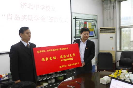 “人得常懷感恩之心,我現在所擁有的一切少不了母校的培育,什么時候也不能忘本。”肖島把想回報母校的想法告訴了高中時候的班主任老師。在老師的支持下,肖島捐助20萬元,在濟北中學創立了“肖島獎助學金”。“這是我校有史以來第一個以校友名字命名的獎助學金項目,但絕不會是最后一個,相信會有更多的校友回到母校,回饋母校。”提起“肖島獎助學金”,濟北中學校長李連師不無激動。