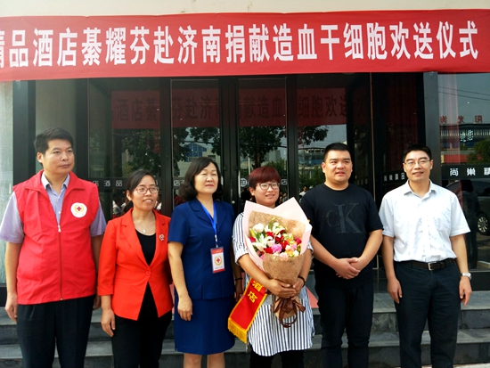 9月1日上午,東營市紅十字會在黃河路尚巢賓館為市第30例造血干細胞捐獻者綦耀芬舉行歡送儀式