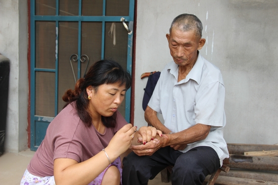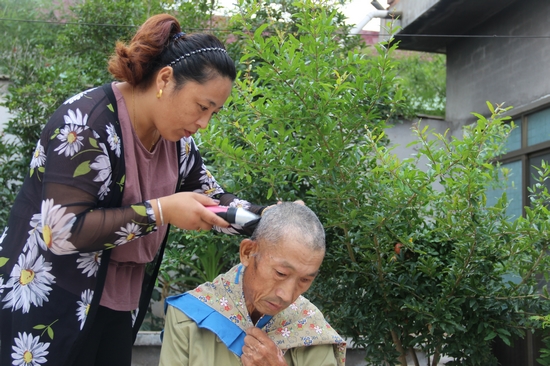 “誰都有到老那一天?孝敬老人天經(jīng)地義,俺伺候公爹也算是盡到了做天下兒女應(yīng)盡的責(zé)任。”樸實(shí)的話語讓人們對李光萍增添幾分欽佩。李光萍常說,進(jìn)了曹門就是一家人,對公爹和婆婆好就是對丈夫和兒女好,李光萍在家里還是一個(gè)妯娌團(tuán)結(jié)和睦的好榜樣,照顧老人從不相互推脫,與弟媳婦掙著伺候公爹,也從不和小姑子講條件、分責(zé)任。“孩子他爸常年在外開車,很少有空照顧公爹,孩子兩個(gè)姑姑出嫁多年,又不能天天守在公爹身邊,俺多擔(dān)載點(diǎn)應(yīng)該。”話雖不多,卻使得小姑子心里暖融融的。每次小姑子來看望公爹,她總是笑臉相迎,并讓小姑子多提建議。小姑子深受感動,逢人便說,像俺嫂子這樣的賢妻良母十里八鄉(xiāng)也難找。2015年初夏,公爹不小心讓開水燙了,傷口紅腫,有感染跡象,李光萍每天一大早就用三輪車推著公爹到附近診所掛吊瓶,公爹的身子又不靈便,端湯喂藥、洗洗漿漿全落在她一人身上,在李光萍的悉心護(hù)理下,曹永亮的燙傷很快痊愈。“若不是兒媳婦為俺清洗換藥這么勤,傷口早就化膿了,胳臂、腿多處燙傷好的這么快,靠的是光萍這孩子的精心護(hù)理。”說到這里,年過六旬的曹永亮眼睛濕潤了。