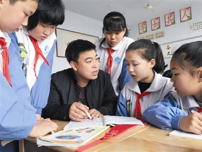 不只張?jiān)谘蟊敬宓暮⒆右灿衅渌宓暮⒆觼砩稀八狞c(diǎn)半課堂”。放學(xué)后張?jiān)谘笤谧约旱慕淌依锏群颍灰粫?huì)兒,不同年級(jí)的20多個(gè)學(xué)生陸續(xù)走進(jìn)教室,他們已經(jīng)習(xí)慣了放學(xué)后到張老師的“四點(diǎn)半課堂”繼續(xù)上課。利用放學(xué)的這段時(shí)間,張?jiān)谘蟾鶕?jù)每個(gè)學(xué)生的實(shí)際情況進(jìn)行分類指導(dǎo),并且針對不同年級(jí)、不同學(xué)科學(xué)生提出的問題進(jìn)行耐心解答。“這段時(shí)間正好是空當(dāng),家長沒下班,孩子們回家了也無人照看,我利用這段時(shí)間給孩子們輔導(dǎo)一下功課。”張?jiān)谘笳f。