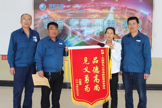 受傷村民劉國英住院一個多月,在院中就四處打聽好人管海玉的下落。5月3日上午,剛從醫院出院回家休養,劉國英就帶著一面繡有“見義勇為 品德高尚”的錦旗和感謝信來到國網文登供電公司運維檢修部,當面感謝在她遭遇持刀盜賊時,管海玉伸出援手、智勇雙全、勇擒盜賊的英勇行為和救命之恩,并贈送現金被管海玉婉言謝絕。她說:“我都不知道該怎么感謝了,要不是你及時相助,我這條命都不知能不能搭上……管師傅是我的大恩人,救了我,也救了我們全家,世人還是好人多啊!”