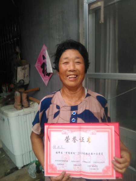 何治蘭公公歷江吉當(dāng)時(shí)已86歲高齡,并且單目失明,腿腳不便,生活難以自理。育有一兒五女,年齡最小的兒子厲運(yùn)修已病逝,女兒大多身處外地,也已是花甲、古稀之老人,對(duì)歷江吉的贍養(yǎng)之義有心無(wú)力, 61歲花甲之齡的何治蘭在飽經(jīng)滄桑之后也是多病纏身,但面對(duì)老公公的贍養(yǎng)問(wèn)題,其決心和信念是當(dāng)仁不讓的。雖患老寒腿、風(fēng)濕病,但其公公的衣物從來(lái)都是清清爽爽的,這離不開(kāi)何治蘭三天兩頭的漂洗;雖生活艱辛、貧困,但老人的吃喝無(wú)憂,這離不開(kāi)何治蘭省吃儉用的節(jié)儉。凡有好的餐食,都是老人先吃,而其本人則有饅頭、煎餅充饑就好。其孝義之大觸動(dòng)了周邊鄰里,紛紛效仿。一時(shí)間本村內(nèi)孝悌成風(fēng),鄰里團(tuán)結(jié),友愛(ài)互助。