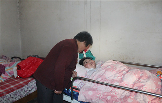 剛從醫院回來時,張愛霞身上插著胃管、喉管等各種管子,不能言語,一動不能動,睜著眼睛卻沒有任何反應,李道娥看在眼里,疼在心里,暗暗下定決心要把兒媳照顧好,讓她被病痛折磨的身體能盡量舒服一些。張愛霞每天吃飯只能吃流食,而且只能用針管慢慢往胃管里打。每次給兒媳喂飯的時候,李道娥都先拿毛巾小心地將她的口水擦干凈,然后用針筒吸一筒粥,從插著的胃管里一點點注入,一碗粥喂下來往往都要一個多小時。雖然張愛霞不能說話,但是李道娥怕她受委屈,一日三餐按時按點,從來沒有耽誤過。擔心張愛霞消化困難,李道娥變著樣的給她做容易消化的食物吃,還要按時喂水。就這樣,李道娥每天五點鐘起床,收拾家務,洗洗涮涮,等張愛霞醒了,李道娥開始給她洗臉、翻身、收拾床鋪、換洗尿片、喂飯喂水,直到晚上12點以后李道娥才迷迷糊糊的上床睡覺,兒媳生病至今的六年來天天如此。