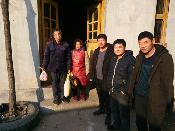 2018年春節蔡高利和村上的兩位愛心人士一起湊了幾千元,買來米、油、肉餡對村里的貧困戶、殘疾人、孤寡老人等困難群體進行走訪慰問,讓他們過好年。