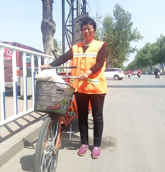 22載日月輪回,每天迎接第一縷晨曦,送走最后一抹夕陽。歷經三伏酷暑、數九嚴寒、風雨雷電、漫天飛雪,焦恩嶺始終在環衛第一線保持著高度的戰斗狀態。每天早晨5點半以前,勤勞的焦恩嶺就腳踏三輪車, 來到了空蕩無人的街上, 賣力地干起來,不放過每一個角落,來回巡撿著紙屑、果核和煙頭,竭力擦拭著護欄、果皮箱和垃圾桶……然后,一一擺放整齊,再把垃圾分類放置。她把原本臟兮兮、亂糟糟的大街收拾的井井有條、潔凈敞亮,臉上滿是收獲的喜悅和燦爛的笑容。每當有人嫌臟嫌累嫌工資低而離開的時候,不論是領導安排還是自己得知,加緊干完自己的分工路段后,她就會主動頂上去。她說:“老伴戴林很支持我,一忙不過來他就擠時間幫我干。大兒媳知道我喜歡干環衛工作,她就自己帶孩子。”她又酸楚地說:“我住后屯老母親住小屯,不到二里地的路,見她的時間太少了,去年老人臨終前的一段時間光喊我的名字,真見了面,她就攆我快去忙吧。妹妹主動承擔起伺候老人的任務,經常告訴我不用擔心老母親,有她頂著。現在我要把這份虧欠補償給83歲臥床不起的婆婆,夜里光怕老人尿了床,要保持醒睡的樣子,給她端尿盆、調換被褥……”焦恩嶺說著又傻笑起來:“不提這些了,誰讓我喜歡這個活兒呢?”