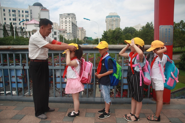 只要學(xué)生們還要上學(xué),王文政老人就會(huì)每天早上6:50,中午11:20,下午15:20準(zhǔn)時(shí)出現(xiàn)在天橋上,護(hù)送孩子們上學(xué)、放學(xué)。沒想到,這志愿者一干就是5年,老人把志愿服務(wù)看成一份責(zé)任。