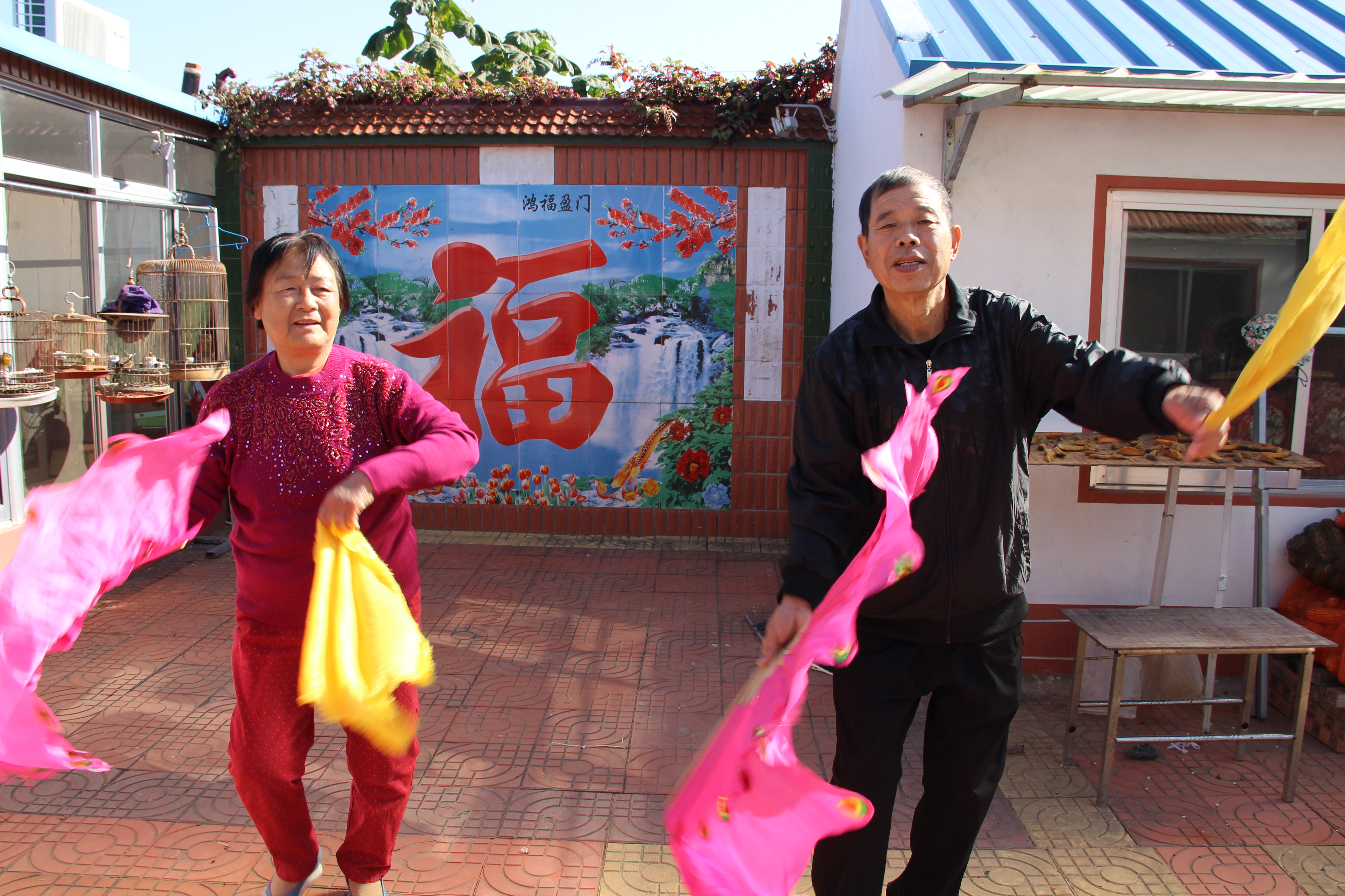48年前,臧義好還是鋪集鎮(zhèn)工廠的一名職工,妻子原林春是當時青島首批上山下鄉(xiāng)的知青。1970年,兩人結婚,熱愛文藝的原林春在自家門口自編自演膠州茂腔和膠州秧歌,很快就吸引了一大批愛好文藝的鄉(xiāng)親們。村委和鎮(zhèn)黨委先后給她們購置了服裝道具,讓這十幾個鄉(xiāng)村婦女走上大舞臺。從此,跳健身秧歌舞在鋪集鎮(zhèn)老百姓中間流行起來,原林春也成為大家的領隊和指導老師。臧義好很支持妻子,閑暇幫她編劇本寫臺詞,偶爾也參與演出。兩人幾十年互敬互愛,是村里的模范夫妻。
