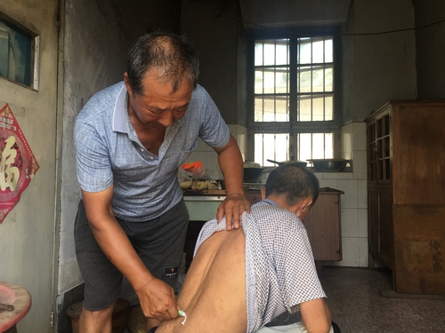 今年50歲的于春海,從生下的那一天起,生活便是無比的簡單,由于遺傳和治療不及時(shí)的緣故,于春海的智力一直停留在一個2、3歲的小孩子水平,缺乏對生活最基本的認(rèn)知,除了吃飯之外,日常生活基本離不開人的照顧。每天就是吃飯和坐著,同時(shí),還患有嚴(yán)重的皮膚病和乙肝,需要藥物治療。而在劉明舉的生活里,除了日常工作之外,便只剩下陪伴著于春海。于春海全身患有嚴(yán)重的皮膚病,需要藥物治療。前幾年家庭生活比較拮據(jù),劉明舉求爺爺告奶奶,向別人求到了對于一般家庭還是很廉價(jià)的治療皮膚病的藥物,每天幫于春海進(jìn)行全身的涂抹。不管嚴(yán)寒酷暑,兩個人都要坐在家里為了“涂藥”這個事進(jìn)行一番抗?fàn)帯S捎谄つw病,每次涂藥的時(shí)候,于春海都因?yàn)槠つw接觸而疼得發(fā)狂。隨著歲數(shù)的增長,劉明舉越來越感到力不從心,每到劉明舉無法將于春明按住的時(shí)候,兩個大老爺們便抱在一起哭一會兒,你埋怨我一陣,我罵你一陣,然后等疼痛消弭之后繼續(xù)下一輪的抗?fàn)帲@一抹便是20多年。