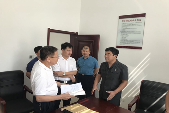 黃巍(右一)向市司法局同志們匯報人民調(diào)解工作情況