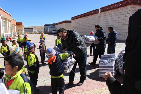 為改善困難群眾生活,袁虎和其他援藏同志積極開(kāi)展扶貧捐款活動(dòng)。那時(shí)他們剛到昂仁尚不足一個(gè)月,還沒(méi)發(fā)工資,他從隨身現(xiàn)金中拿出500元捐給了昂仁的困難群眾。在集中結(jié)對(duì)幫扶活動(dòng)中,袁虎與日吾其鄉(xiāng)央確村的貧困群眾索朗一家結(jié)成幫扶對(duì)子,一有時(shí)間就帶著油、面到他家去看看,竭盡全力幫助他們解決困難。在工作組統(tǒng)一安排下,袁虎發(fā)動(dòng)自己的親朋好友和原單位同事,為昂仁縣中小學(xué)學(xué)生開(kāi)展捐獻(xiàn)“愛(ài)心棉衣”“暖心鞋”活動(dòng)。他所在的周村區(qū)第二人民醫(yī)院,200余職工捐助衣物近千件。他愛(ài)人也買(mǎi)了1000多元的嶄新棉衣寄到昂仁,還帶著他6歲的兒子到捐贈(zèng)處義務(wù)勞動(dòng)。