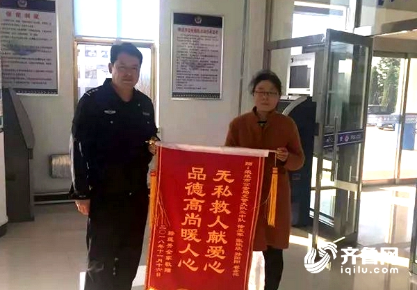 11月19日,駕駛?cè)硕车钠拮与徯銛y帶錦旗來到交警大隊(duì),對(duì)民警和輔警隊(duì)員表達(dá)真摯的感謝。她表示,丈夫已無大礙,是民警舍身救人,挽救了丈夫的性命,挽救了她的家庭,感謝救人的徐發(fā)軍,感謝榮成交警。