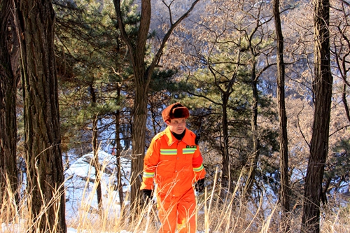 薛希亭進行日常的山林巡邏工作