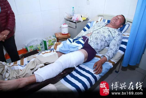 朱愛國受傷后,村里的好幾位鄰居都主動來到醫院照顧他。朱愛國腿部肌肉斷裂,到醫院后清創縫合了20多針,一個半小時的手術結束后,朱愛國從手術室出來第一時間詢問的是火有沒有被撲滅,他說如果再讓他選擇一次,他還會義無反顧的選擇去救火。