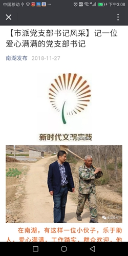 2018年11月27日,南湖發(fā)布全面介紹了韓彬駐村的工作風(fēng)采。2018年2月份他被選派到東港區(qū)南湖鎮(zhèn)尹家河村任職黨支部書記,駐村后扎下身子到田間地頭、大街小巷、炕頭庭院逐戶走訪,群眾農(nóng)忙不在家時(shí)就利用早上或晚上的閑暇時(shí)間挨家挨戶走。全村257戶基本走訪完成,既拉近了與群眾的距離,又了解了村情和民意。他采取精準(zhǔn)扶貧與精神扶貧、公益和工作相結(jié)合的工作方法先后開展了扶貧助學(xué)(六一兒童節(jié)前夕爭(zhēng)引資金8.5萬元為尹家河小學(xué)的孩子們發(fā)放書包、水壺,更換了桌椅),扶貧濟(jì)困:帶領(lǐng)貧困戶卜大爺去診斷評(píng)殘,并聯(lián)系醫(yī)院為他做了白內(nèi)障和息肉清除手術(shù)。他積極為老人開展99公益理發(fā),自費(fèi)為村70歲以上老人愛心攝影等。在村莊發(fā)展規(guī)劃方面,積極爭(zhēng)取增減掛鉤項(xiàng)目,實(shí)施村莊改造,目前正在選址。在壯大集體經(jīng)濟(jì)方面,對(duì)上爭(zhēng)引資金100萬元擬建扶貧大棚,以此收益作為集體經(jīng)濟(jì)收入,目前大棚已完成招投標(biāo)建設(shè)階段。