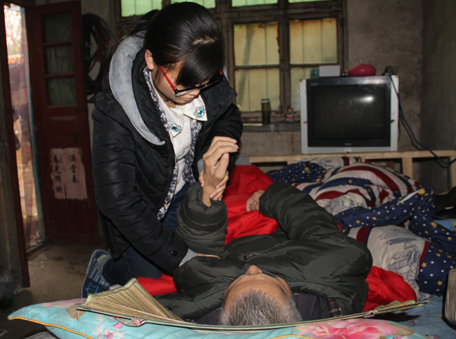 在炎熱的夏天,尚付雁每十分鐘要為父親翻身一次,時常用溫水擦拭身體,其間的勞累可想而知。每每聽到父親說沮喪的話,她總是這樣安慰父親:爸,你在我們的家才完整,你不能說這種喪氣的話。她繃緊牙關,試圖控制眼角打轉的淚水。她深知父母在,家就在。